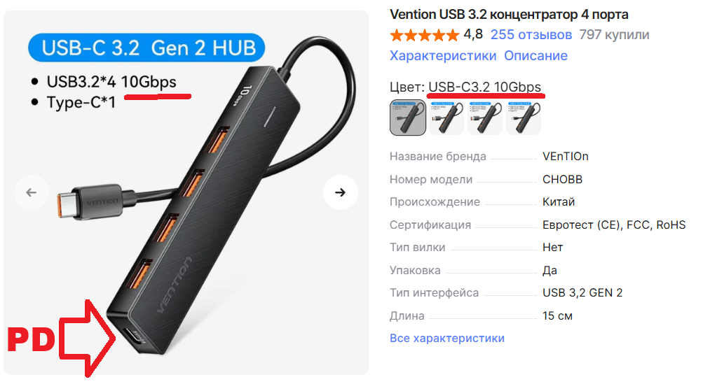 Прекрасно, только у вашего лишь два порта Type-C, а не четыре.
