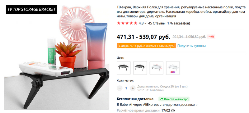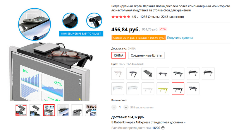 Удобные полки для монитора/телевизора. Разных расцветок, разных конфигураций, разной стоимости. Для чего их можно использовать? Роутер поставить, внешний диск. Очки положить. Фигурку Бэтмена поставить для создания рабочего настроения. Много всяких применений найдет вдумчивый пользователь для подобной полочки!