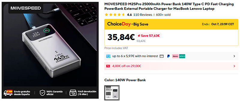 10000mAh / 20W должен стоить не более 10 долларов (у хорошего производителя). А тут целых 25 евро. Совсем обнаглели.