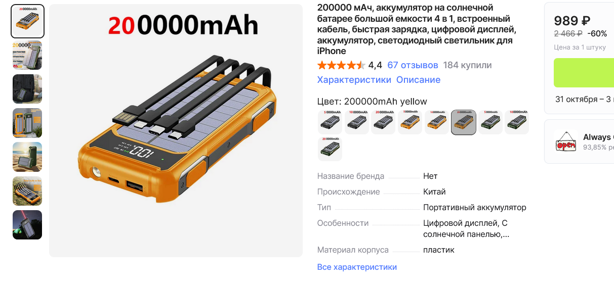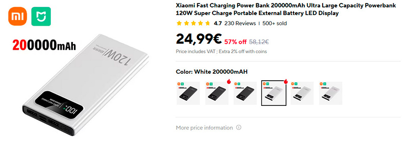 Сначала - предупреждение. На Aliexpress часто мелькает вот такой внешний аккумулятор: 20000 мАч (у них там и вовсе написано 200000 мАч - в нулях запутались), мощность типа как 120 Вт, типа как Xiaomi. И стоимость - достаточно низкая. Так вот, во-первых, никаких 20000 мАч там нет и в помине: я измерил, там реальная емкость в два раза меньше. Во-вторых, это, конечно же, не Xiaomi даже рядом. Ну и, в третьих, реальная мощность зарядки - порядка 20 Вт. Так что это фуфло конкретное, не наколитесь.