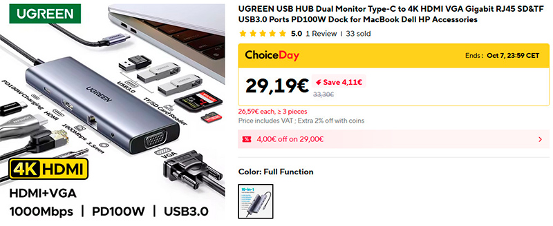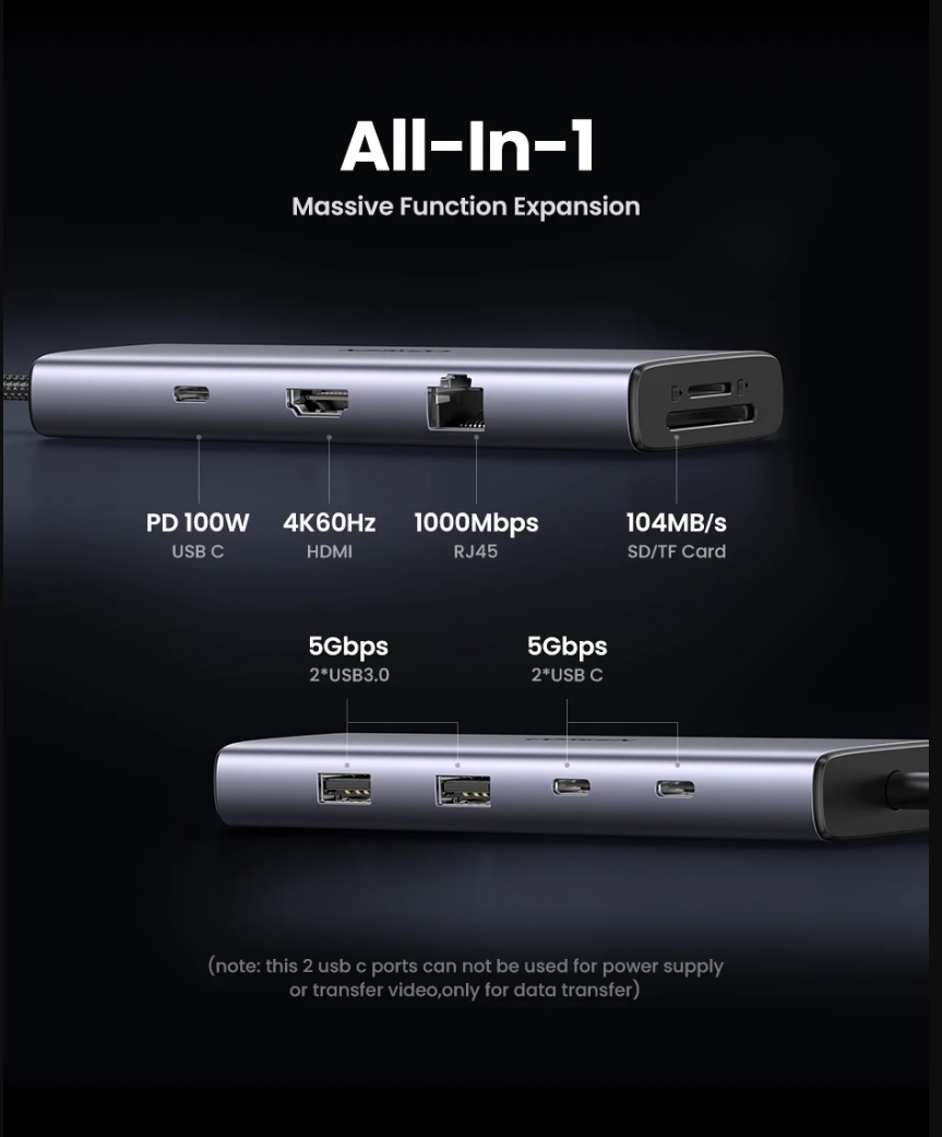 USB-хаб для ноутбука UGREEN "10 в 1" - практически все виды портов, какие только можно