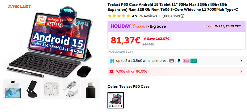 Если нужен прям совсем совсем дешевый, при этом приличный большой планшет - вот хороший вариант: Teclast P50 Case. Дисплей IPS 11" 1280х800 с частотой обновления 90 Гц, платформа Unisoc t606 octa-core (по производительности этот процессор где-то на 25% уступает Snapdragon 680, установленному в планшете Redmi Pad SE), RAM 4 ГБ (расширяется до 12 ГБ), ROM - 128 ГБ, поддерживаются карты памяти microSD до 1 ТБ. Двухдиапазонный WiFi, аккумулятор 7000 мАч, есть GPS. Более 3000 продаж, рейтинг 4,9. Я имел дело с несколькими планшетами Teclast, у меня на сайте есть эти обзоры: несмотря на дешевизну, это вполне достойные устройства.