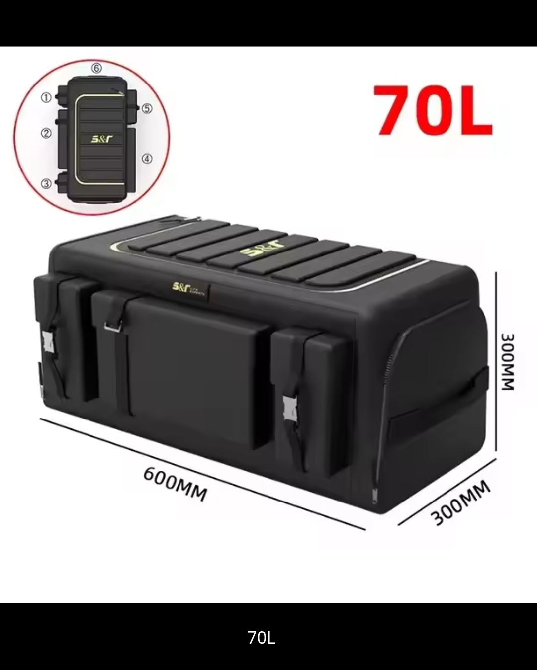 Вместительный органайзер для багажника автомобиля на 70 литров. И он складной: в сложенном виде в высоту - всего 10 см.