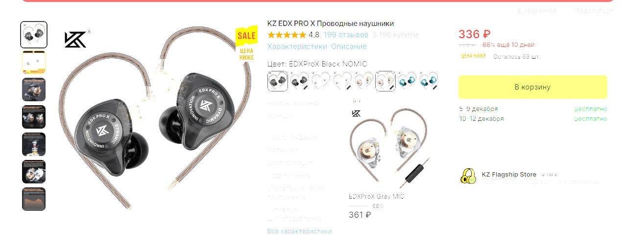 Проводные наушники-вкладыши KZ EDX PRO X всего за 336 руб. на AliExpress.