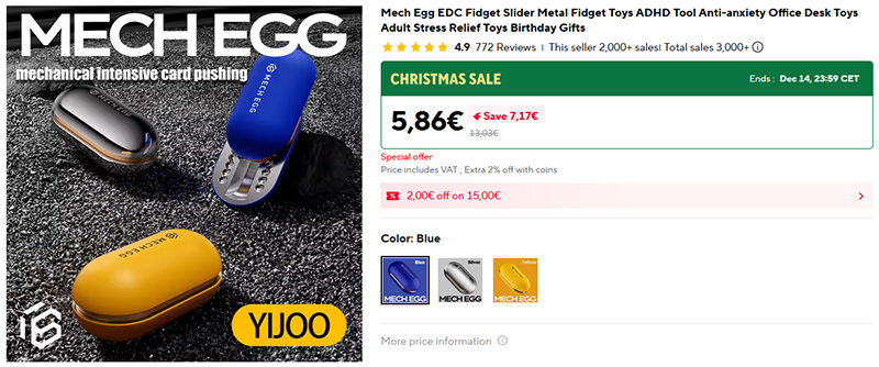 Это прям для меня - механическое яйцо-антистресс. Когда у меня руки свободны (разговор по видеосвязи, просмотр фильма), мне нужно что-то вертеть в руках, и чтобы оно громко не шумело. У меня есть разные штучки для этого, но хочется какого-то разнообразия. Тяжелый металлический корпус, как пишут, хорошо лежит в руке, а магнитный механизм дает мягкий, но четкий щелчок. Заказал.