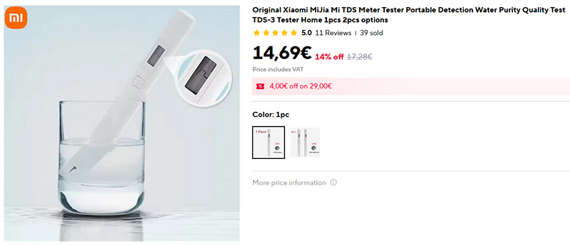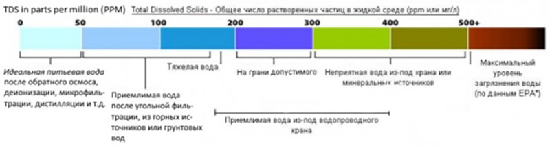 Тестер для определения качества воды Xiaomi MiJia Mi TDS Meter Tester. Он измеряет TDS (Total Dissolved Solids) - это примеси, содержащиеся в воде. Как оценивать результаты? Вот по этой шкале.