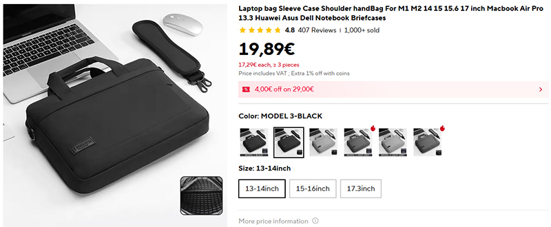Удобные противоударные сумки для ноутбука разных размеров и разных цветов. Влагозащита, внутренняя защита ноутбука от повреждений, несколько отделений. Более 1000 продаж, средний рейтинг 4,8.