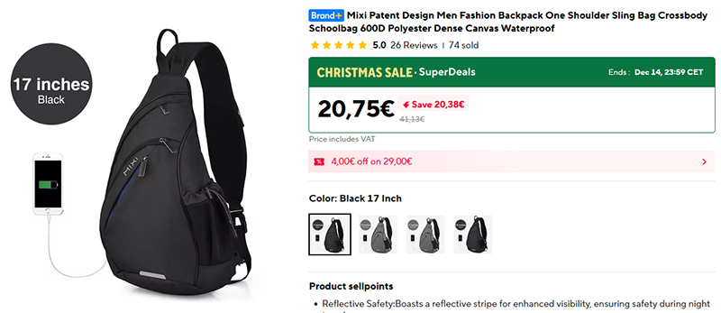 Искал себе вместительный рюкзачок через одно плечо - периодически бывает нужно, когда пешком выбираешься в город, на велосипеде или самокате. Нашел вот такой неплохой вариант. Именно рюкзачок через одно плечо, 17 или 19 дюймов, два варианта цветов, есть порт для зарядки смартфона, что тоже нелишнее.