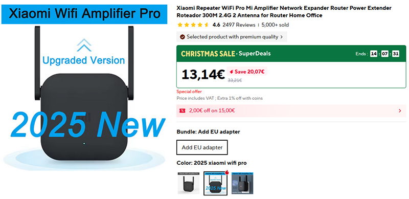 Плохо добивает WiFi в какую-то комнату, но не хочется возиться с разворачиванием MESH-сети? Самый простой способ - вот такой копеечный усилитель Xiaomi. Втыкается в розетку поближе к "медвежьему углу", в пару кликов настраивается через приложение, после чего никаких проблем с WiFi в этом месте уже не будет. И это новая версия данного усилителя с расширенными возможностями. Поддерживаются скорости до 300Mbps и до 16 подключенных устройств. У меня несколько месяцев проработала предыдущая версия - решала проблемы с "медвежьим углом" на втором этаже, никаких нареканий не было вообще, работала отлично.