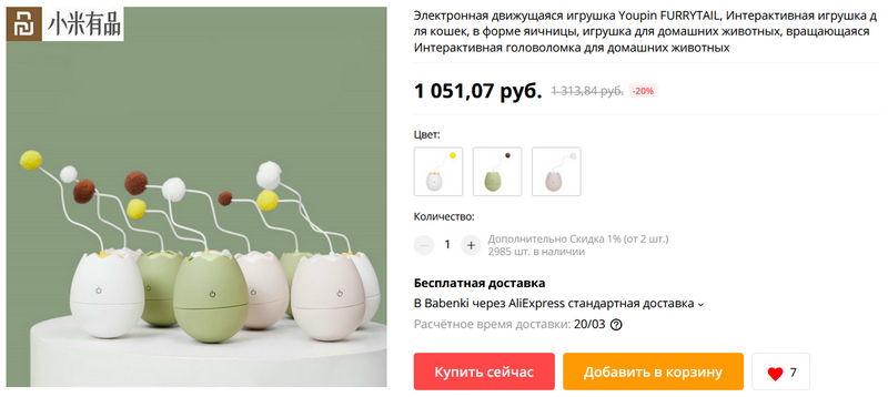 Движущаяся игрушка для кошек. Не шумит, работает долго, кошаки в восторге.