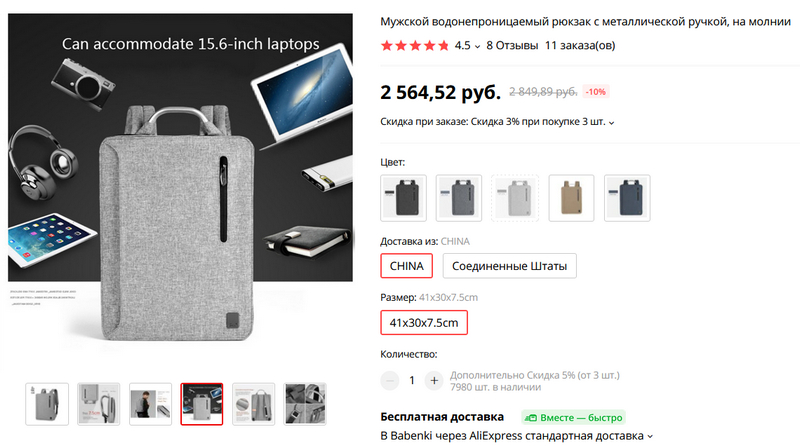 Очень тонкий (всего 7,5 см) влагонепроницаемый рюкзак для ноутбука (влезает 15,6") и других вещей. Есть разные расцветки.