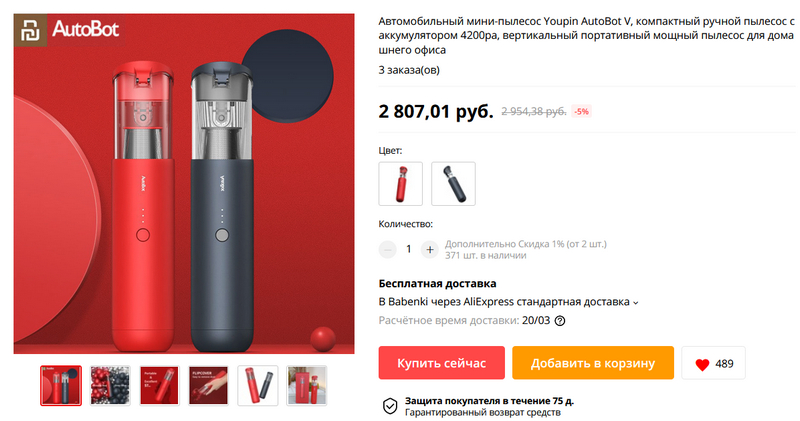 Очень компактный ручной мини-пылесос Youpin AutoBot V. Для машины, дома, офиса. Мощность всасывания - 4200 Па. У моего аналогичного - 5000 Па, так вот, мощности хватает. Понятное дело, что полноценные пылесосы значительно мощнее, но и такие ручные - не игрушка, они действительно более или менее прилично всасывают. Заряжается через USB, время работы - 25-28 минут на одном заряде. Специальный адаптер для использования в машине к нему не нужно приобретать: у вас все равно есть зарядный адаптер для телефона, от него этот пылесос спокойно можно заряжать.