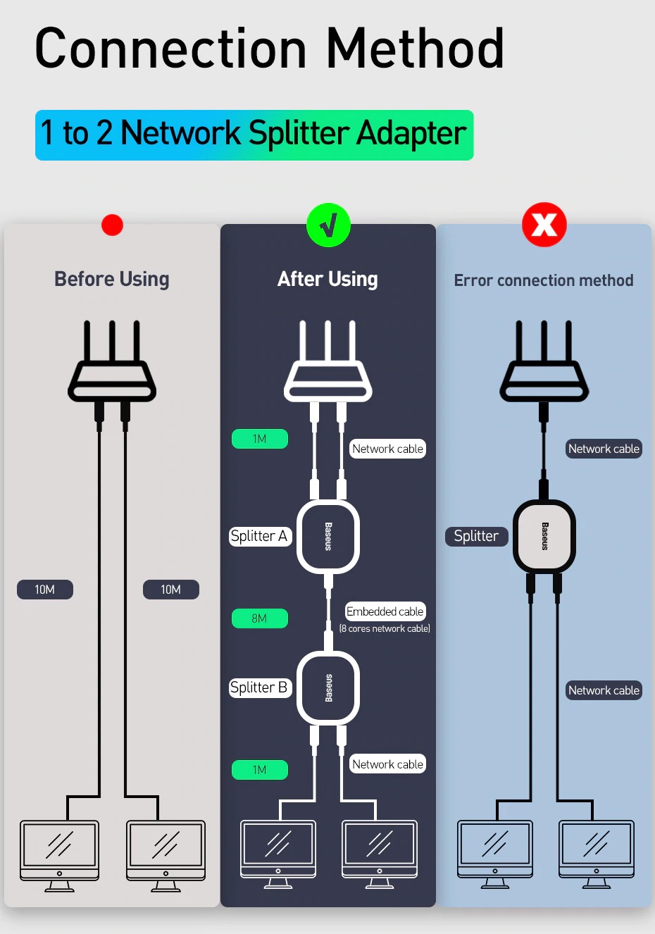 Очень полезная штука для случаев, когда, например, к одной розетке с сетевым кабелем нужно подключить пару устройств, а не хочется городить огород со свитчем - разветвитель RJ45. У меня в доме один такой используется - удобно. Впрочем, подчеркиваю, это для устройств, которые не должны работать по сети одновременно. Чтобы работали одновременно - это нужен свитч.