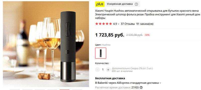 Оопс. А я как раз недавно заказал другой электрический штопор от xiaomi