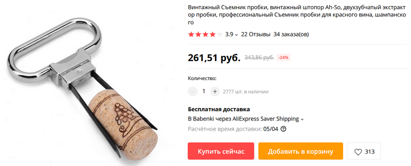 Оказалось, реально хорошая штука. Геморроя ровно 0, пробку прокалывает вообще без усилий. Скорость - откупорил первую бутылку и даже не успел снять видео 😄 Думал, качну разика три и возьму в руки телефон, заснять. А все, после третьего качка, без всяких усилий, опять-таки, пробка плавненько сама вылетела. Прямо волшебство какое-то. Причем это было Кьянти с довольно плотной пробкой. Я как раз хотел такую штуку для противоборства с крошащимися пробками, например, оранжевое Фанни Адамс, которое у нас продается - вино неплохое, от Esencia Rural, те же самые "Зеленые колготки", но пробки - ужас, из шести бутылок ни одну не смог извлечь целиком, обычный штопор ее дырявит и все. И для этих целей будет работать на 110 процентов, я доволен, как слон. Да, на плотных пластиковых пробках игла может скопытиться, а обычные будет открывать - только в путь. В общем, спасибо доброму человеку, который посоветовал. Рекомендую добавить в следующий выпуск 😄