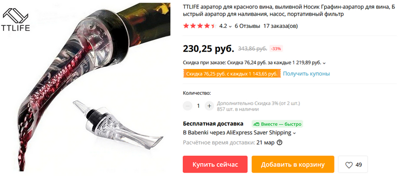Также есть более простой и дешевый вариант, который надевается прямо на горлышко бутылки.