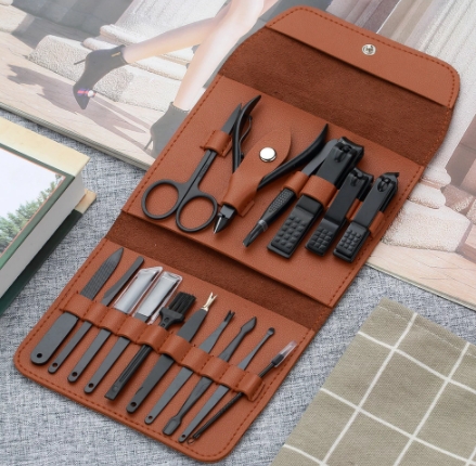 Отличный маникюрный набор. Давно я искал себе персональный недорогой маникюрный набор. Когда у тебя жена и две дочки, найти маникюрные ножницы в доме - тот еще квест. Набор нужен был для стрижки ногтей, а также удаления заусенцев и кутикул. В итоге выбрал этот и не прогадал. За примерно 700 рублей (а по промокоду LKVEIL8CMQPO скидка 150 рублей) в набор входит полный набор инструментов, по мне так больше, чем нужно. Есть минимальный набор за 320 рублей, но там нет девайса (не знаю, как он правильно называется) для удаления кутикул. На выбор есть разные цвета исполнения, в т.ч. и брутальный черный.