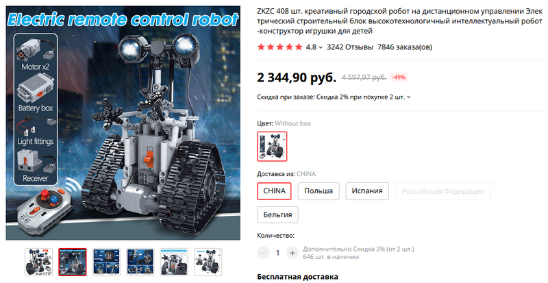 "Интеллектуальный радиоуправляемый робот-конструктор. Очень непростой - 408 элементов."
