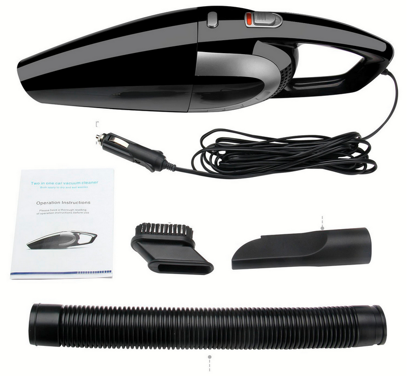 Кстати, об автомобилях. Компактный и довольно мощный ручной автомобильный пылесос с подключением к прикуривателю. Мощность - 120 ватт: как пишет производитель, может засосать четыре айфона. Но похоже, что четырех айфонов в комплекте нет. Зато есть длинный (аж 4,5 метра) шнур для питания и несколько различных насадок.