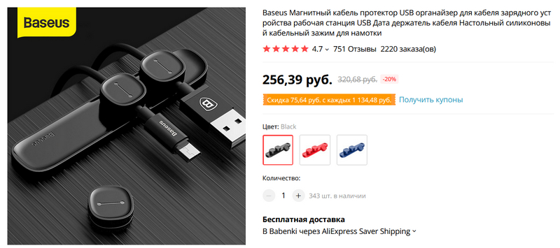Стильно выглядящий и удобный магнитный органайзер для кабелей от Baseus. Возьму себе, такой явно лучше, чем обычные зажимы. И есть три варианта цветов.