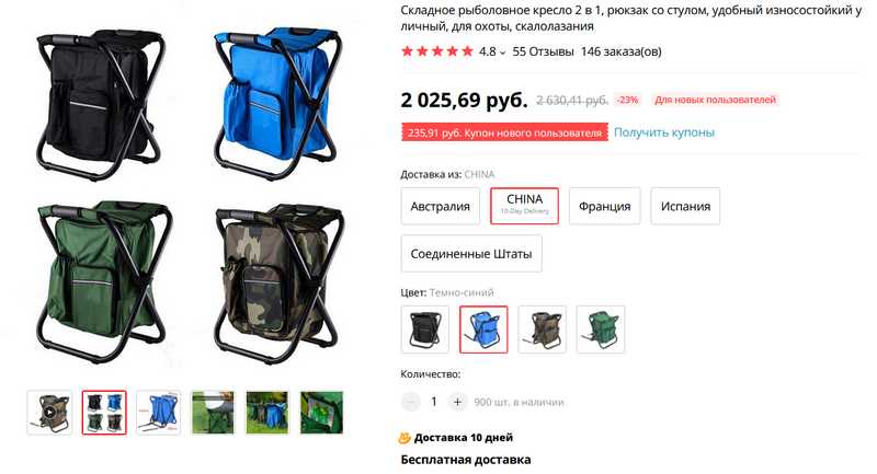 Ну и еще в тему всяких пикников, шашлыков, небольших походов и рыбалки. Насколько я помню, компактные складные стулья/кресла пользовались большим вниманием, так что вот вам еще один интереснейший вариант - рюкзак-табуретка, выдерживающий до 150 килограммов. Причем это настоящий рюкзак, в который много чего помещается и который удобно нести, при этом это также устойчивая табуретка. Интересный вариант, как я считаю.