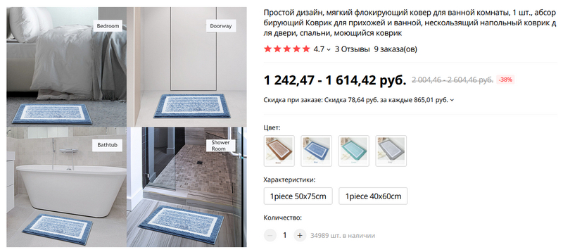Пришла пора менять коврики для ванной, а то скандинавские мягкие фланелевые коврики с оптическими иллюзиями поднадоели, да и износились. Решил купить коврики из микрофибры (они пушистые, более приятные). Поискал разные варианты, понравились вот эти. Простая картинка без изысков, впитывающий воду коврик, нескользящий (резиновая подложка), четыре варианта расцветок, могут стираться в машинке (это специально указано), два размера, многоцелевые: ванная, душ, кровать и даже входная дверь.