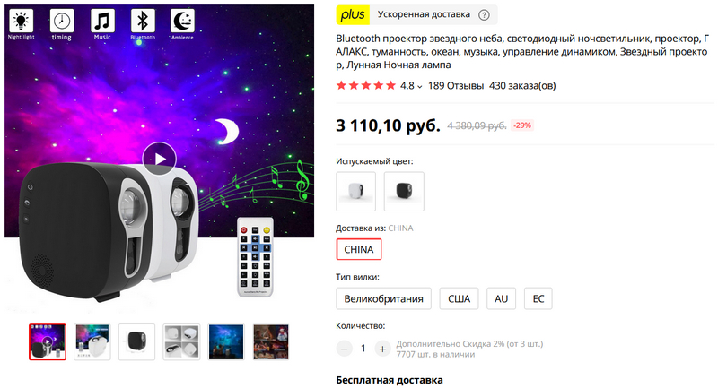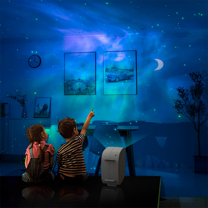 Вы хочете, как говорят в Одессе, немного гаджетов? Их есть у меня! Очень интересный ночник-проектор, который демонстрирует на стены и потолок изображения звездного неба, луны, далеких галактик и так далее. Умеет проигрывать расслабляющую музыку, автоматически отключается через заданный промежуток времени в минутах. Имеет собственный пульт, также управляется со смартфона по BT. Люблю такие штуки, заказал.