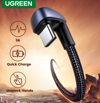 Кабель Ugreen USB Type-C с необычно загнутым разъемом. Идеально подойдет тем, кто любит смотреть видео во время еды, когда телефон\планшет стоит на подставке. Обычный кабель торчит сбоку и мешает, этот же всегда находится за устройством, что очень удобно. Да и длинна 2 метра позволяет не тянуться к розетке.