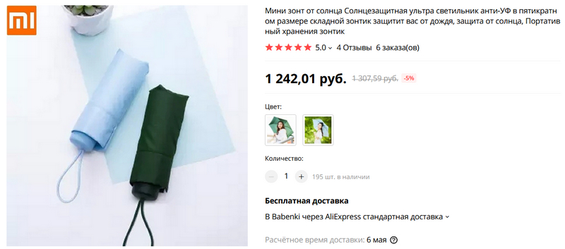 Ультракомпактный зонт от солнца или дождя. Помещается даже в маленькую сумочку. Видимо, прежде всего предназначен для женщин, но и мужчинам такой компактный вариант также может пригодиться.