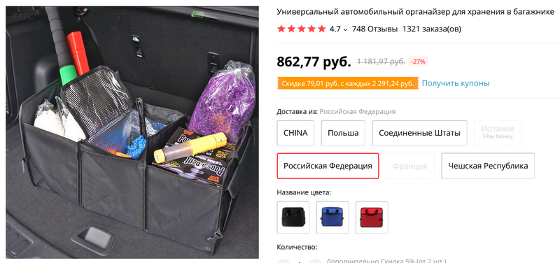 Универсальный автомобильный органайзер для багажника. Трех цветов, есть доставка с российского склада.