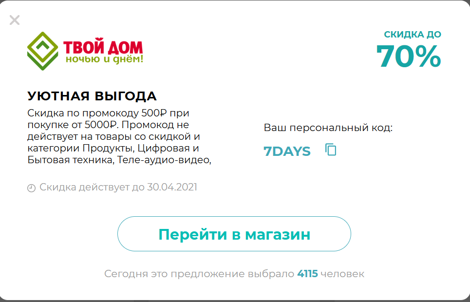 Партнерская программа, с которой я давно работаю, сделала некую витрину с рекламными блоками, где предлагаются скидки по промокодам в различных онлайновых магазинах и онлайновых сервисах по самым разнообразным направлениям: цифровая и бытовая техника, доставка еды и продуктов, товары для детей, товары для дома и так далее.