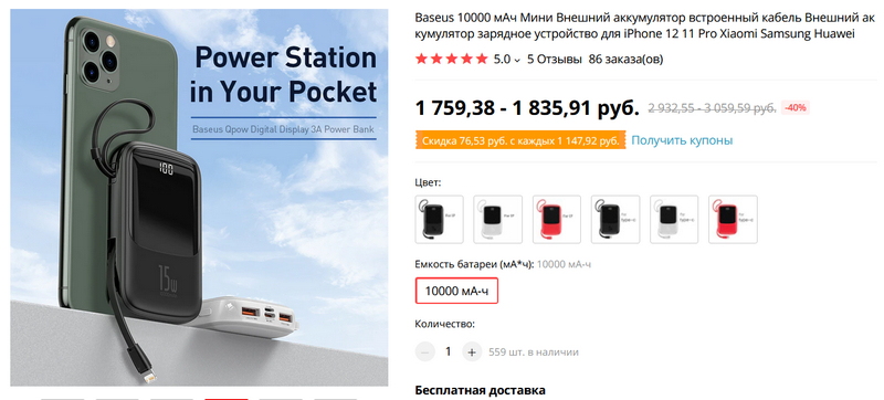 По ссылке есть скидочные купоны на 1500/7500р. 1900/22000р. 2295/28000р.