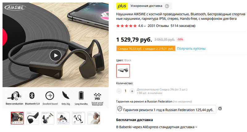 Неплохие (как свидетельствуют отзывы, я сам их не тестировал) и недорогие наушники костной проводимости - для использования там, где важно держать уши открытыми: велосипед, бег, прослушивание музыки на улице и так далее.