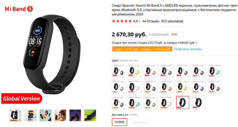 Будьте осторожны: по этой ссылке первые полтора ряда - китайские версии, вторые полтора ряда - глобальные, там должна быть надпись Global! Ну и можно также заказать с дополнительным ремешком нужного цвета.