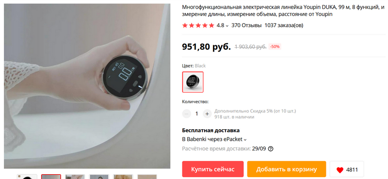 Вот эта штука меня страшно заинтересовала - электронная линейка/рулетка/сантиметр от дочки Xiaomi Youpin. Мне часто приходится измерять что-то рулеткой или сантиметром, и если такая штука будет мерить точно - это очень удобно. Уже ко мне едет, вчера заказал.