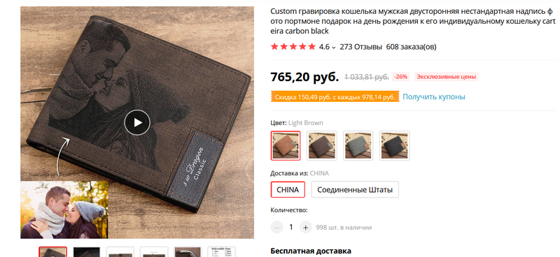 Качественные мужские кошельки различных оттенков, но тут самое главное - продавцу можно сказать сделать гравировку по вашей фотографии: там на странице заказа ниже подробно написано, как это сделать. Может быть хорошим подарком, например. Да и себе сделать кошелек с портретом любимого крокодила Васи - тоже интересно, как мне кажется.