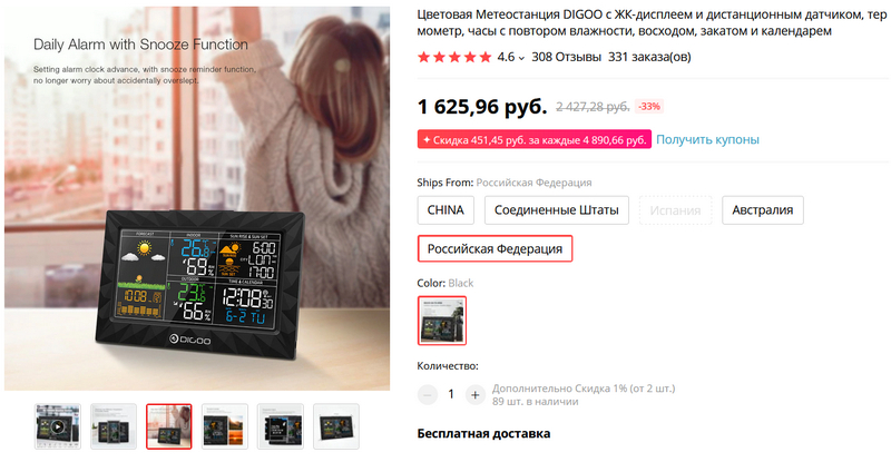 Для любителей домашних метеостанций читатель порекомендовал вот эту. Сказал, что их несколько перебрал, эта понравилась больше остальных. (И здесь есть доставка с российского склада.)