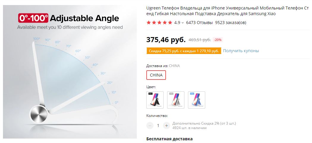 Подставка для телефона от Ugreen
