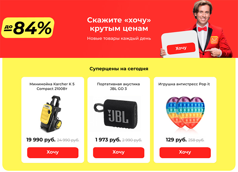 И еще одна новая "секретная" страничка. Вот ссылочка, которую рекомендую положить в закладки. Каждый день по этой ссылке появляются три товара из самых разных областей и разной стоимости, на которые даются хорошие скидки. Я несколько дней эту страницу мониторил, скидки действительно есть, причем очень неплохие.