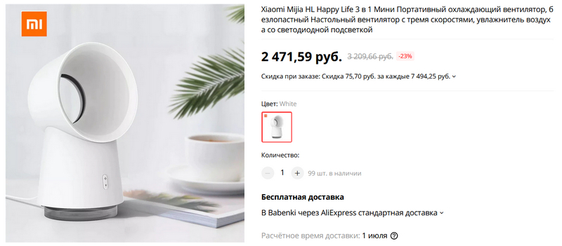 Как раз для приближающегося лета - портативный безлопастной вентилятор Xiaomi Mijia HL Happy Life с функцией увлажнения и с подсветкой. Очень тихий и безопасный, три режима обдува.