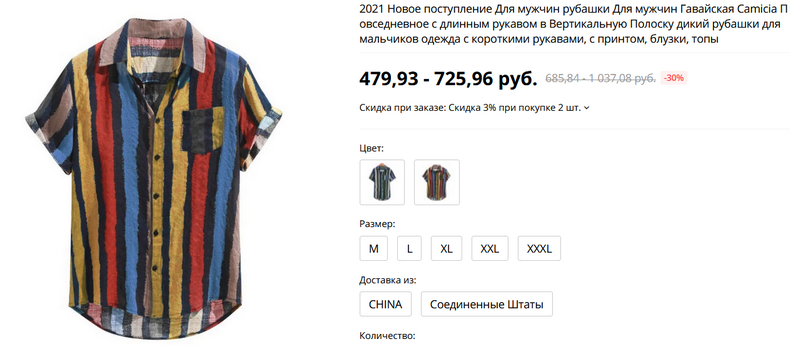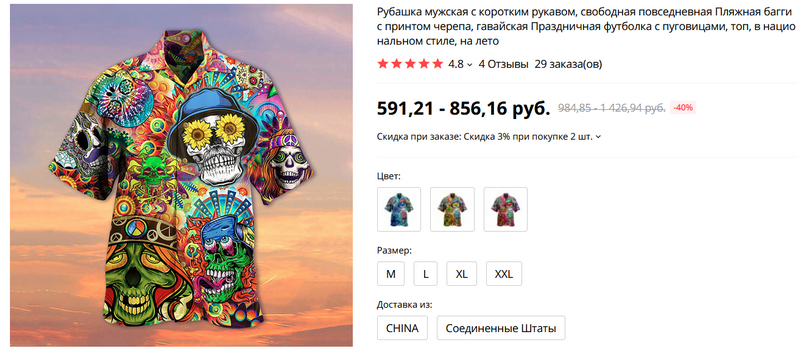Легкие цветастые рубашки с коротким рукавом, люблю такое, заказал. (Там есть таблица соответствия размеров, сверяйтесь с ней.)