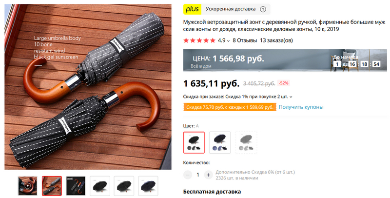 Еще бывает вариант, когда и купоны не нужно собирать и применять: там просто в этот день применяются скидки при покупке - вот, например, 21 мая был такой смартфон, скидку сделали 2390 рублей.