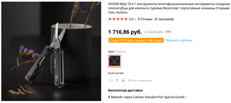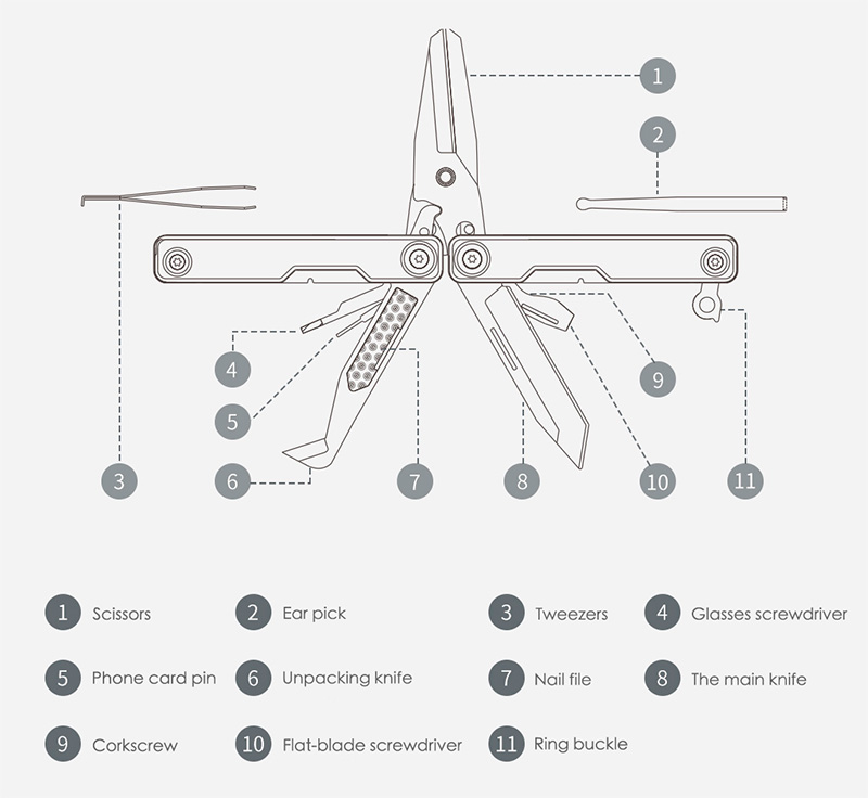 Компактный (8 сантиметров) мультитул от Xiaomi. Десять инструментов, сталь 30Cr13.