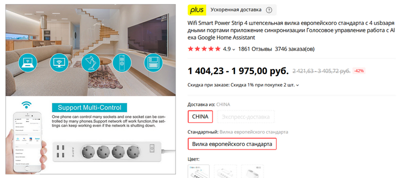 Умные розетки я встречал, а тут целый умный удлинитель под четыре европейских розетки и четыре порта USB. Удлинитель поддерживает подключение по Wi-Fi, управляется через приложение, поддерживает голосовое управление Google Home и Amazon Alexa.