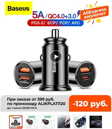 Сейчас на отличнейшуюавтомобильную зарядку от Baseus скидка по промокоду.