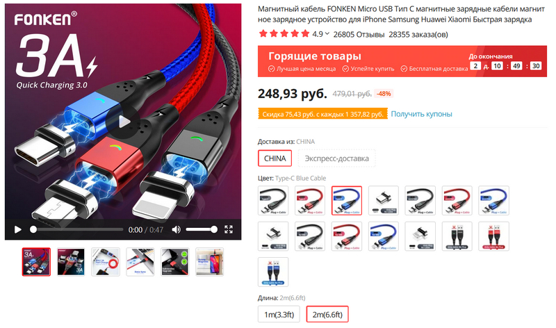 Очередной вариант всегда популярных кабелей с магнитными головками (я как на такие подсел, так что теперь никакие другие не использую). На этот раз от Fonken (это хороший производитель), различных цветов, с различными головками, метровые или двухметровые. Поддерживают быструю зарядку 15 ватт и передачу данных, что ценно.