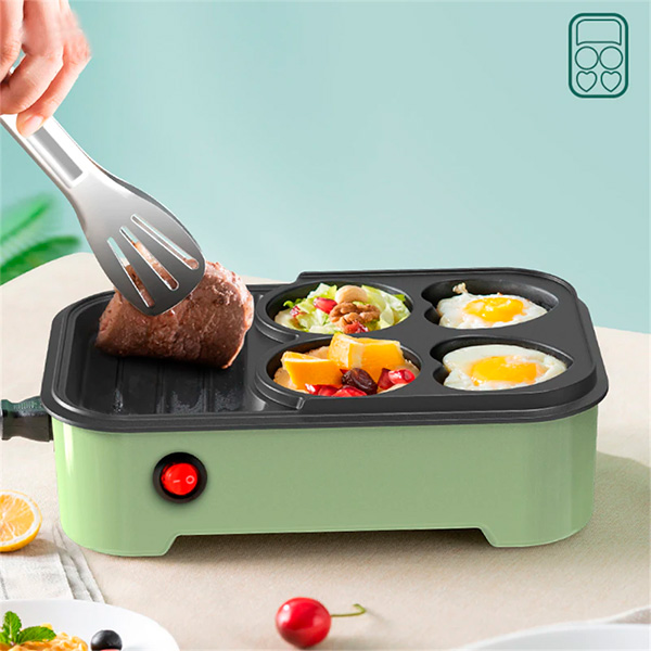 Плитка мощностью 1360 ватт для одновременного приготовления разнообразного завтрака для членов семьи или себя любимого/любимой. Яичница-глазунья, оладушки, сосиски/колбаски и так далее. Нагрев тут до 250 градусов, так что на ней также можно спокойно жарить мясо.