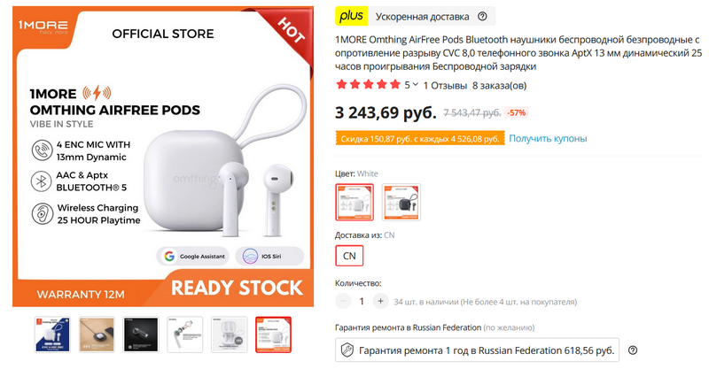 Цена: 3360 руб. из Китая или экспресс-доставка - 3252 руб., но там осталось 3 штуки всего.
