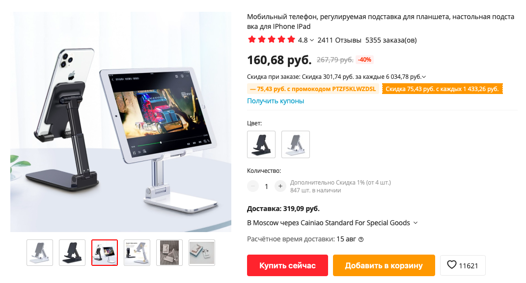 - Купоном продавца (берется на странице с товаром) – 829,78 руб.
