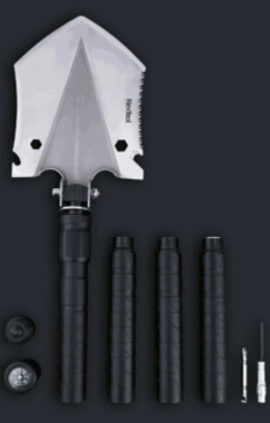 Чего в ней только нет: Открывалка, канаторез, компас, отвертка с битами, шестигранник (12 и 14мм), пила на одной из граней. Для дачи и походов вещь незаменимая. Сама лопата имеет складную ручку, так что не занимает много места в багажнике.